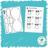 This is a two page template. You can print the first page (the bunny's body) straight onto coloured card and the second page (eyes, nose, tail) onto white card. This makes it nice and easy to make lots of cards of different colours. Alternatively you can trace around the templates instead.Â