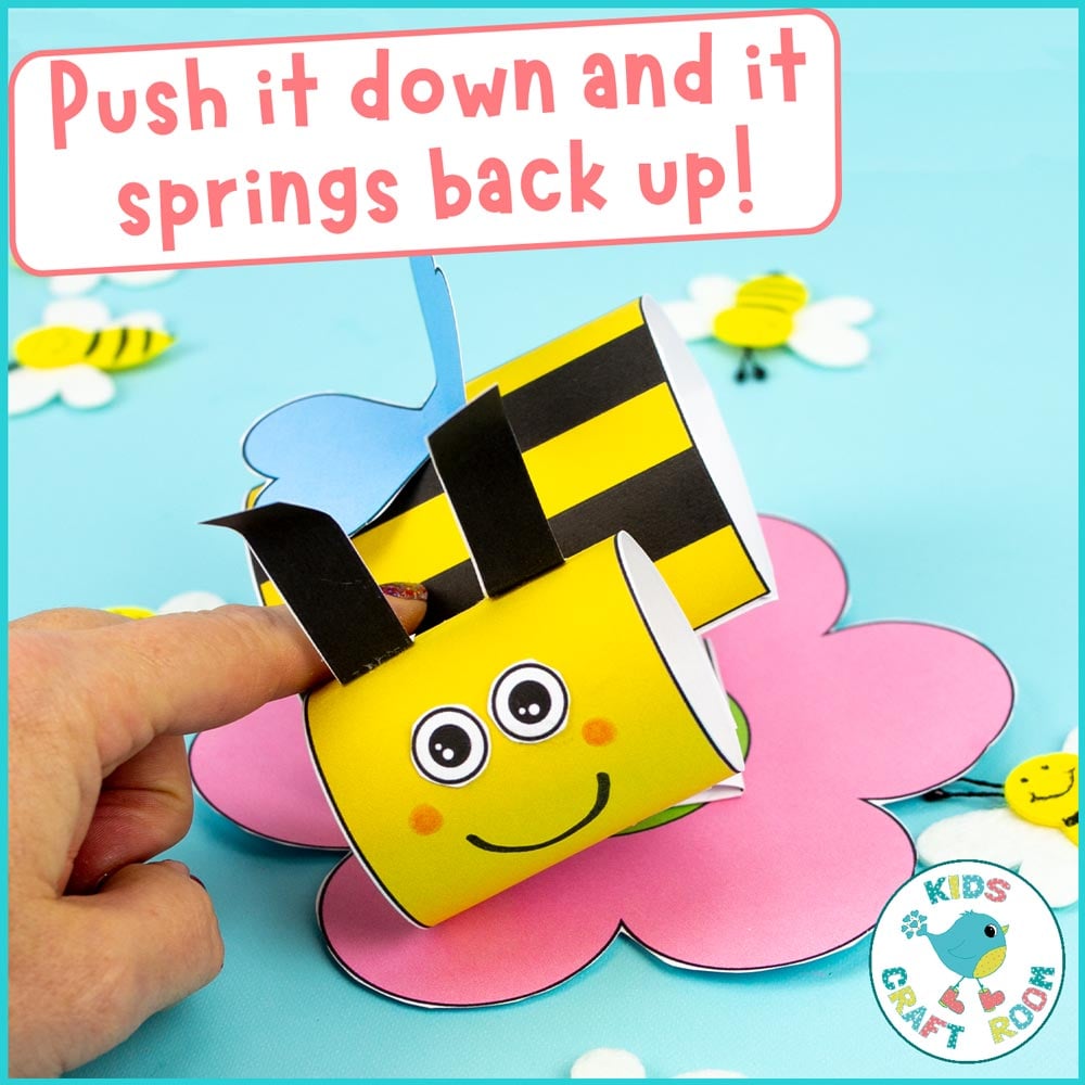 Sitting on a simple paper spring, the adorable bee bounces up and down on its flower, as if it was collecting pollen and nectar! Push it down and it springs right back up! It's so fun!