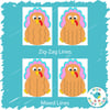 Each turkey cutting sheet is made up of straight, wavy or zig zag dotted lines. Some of the lines are looser and more spaced apart, making them easier to cut. Some are more challenging with lines that are tighter and closer together.