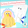 Each turkey cutting sheet comes in full color and also black and white which kids can color in first and then enjoy cutting.